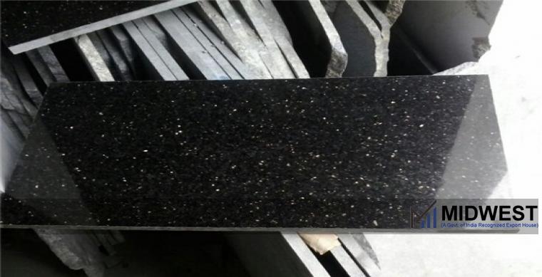 Moon Exports Indian exporters of Black Galaxy Granite Manufacturer Suppliers Exporters India  Black Galaxy Granite Tiles, Black Galaxy Granite Slabs, Black Galaxy Granite Blocks, Black Galaxy granite cobbles. Moon Exports India also produce Kitchen top of Black Galaxy granite, Vanity top in BLACK GALAXY COLOUR GRANITE. Steps and Risers , Cobbles and other interior products are also custom made in black granite. Moon Exports India  also supply Monuments, Tombstones,   Graveyard stone and  tiles made of Black Galaxy Indian Granites. Moon Exports India is a reputed suppliers of Black Galaxy granitepolished slabs and polished tiles  Black Galaxy granite is a mostly black granite with small gold or white flecks. Black Galaxy granite is available in both tiles and slabs . Black Galaxy granite is suitable for both interior and exterior recommended for countertops, walls, backsplashes, flooring and other features.
